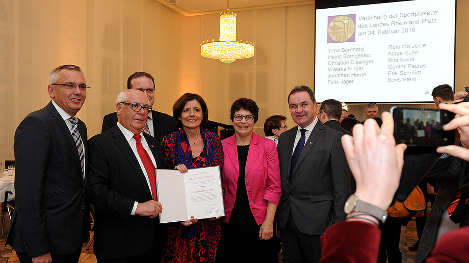 Bei der Verleihung in der Staatskanzlei betonte die Ministerpräsidentin die immense Bedeutung, die der Sport für das gesellschaftliche Miteinander und für jeden Einzelnen habe. „Sport, das ist Leidenschaft und Lebensfreude. Er erreicht Menschen unterschiedlicher Herkunftsorte, Schichten und Altersklassen und dient als verbindendes Element. Toleranz, Fairness und Integration sind heute wichtiger denn je“, sagte die Ministerpräsidentin. Sport sei daher ein wunderbares Instrument zur Inklusion und Integration. Die rheinland-pfälzischen Vereine leisteten zurzeit gerade im Bereich der Flüchtlingshilfe wertvolle Arbeit. So hätten beispielsweise einige Vereine bereits sehr frühzeitig Flüchtlingskinder mit in ihre Mannschaften aufgenommen.