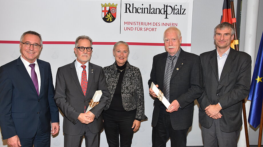 Staatssekretär Günter Kern und LSB-Präsident Prof. Lutz Thieme haben in Mainz fünf verdiente Persönlichkeiten mit dem Sport-Obelisken ausgezeichnet. Aus dem Rheinland wurden der Präsident des Koblenzer Ruderclubs Rhenania, Lutz Itschert sowie Wolfram Boemer, Erster Vorsitzender des Biathlon Sportclubs Adenau, geehrt.